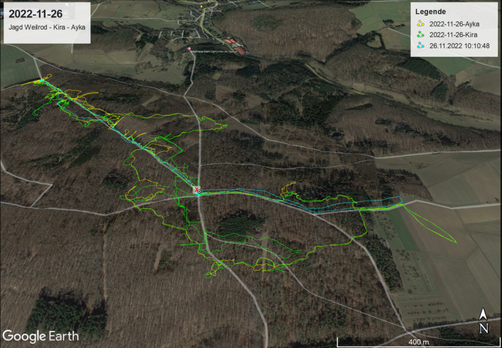 zunächst waren beide abwechselnd unterwegs. Nachdem Kira Sauen los gemacht hat, durfte Ayka auch los und Schweine jagen. Anschliessend waren sie noch länger gemeinsam unterwegs. Der Tag endete mit einer ansehnlichen Strecke.