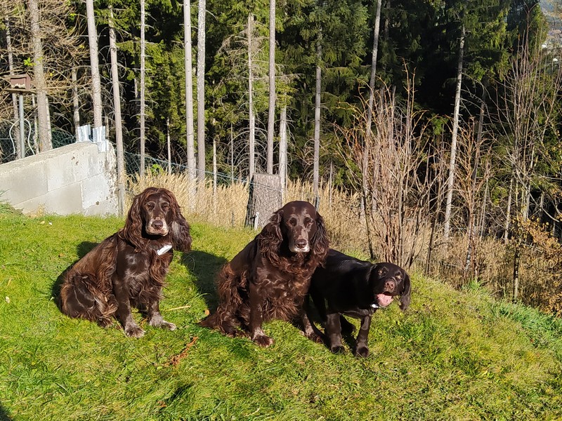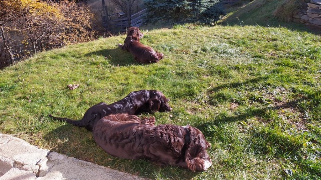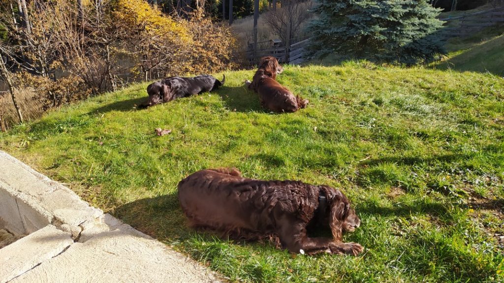 Die Hundefamilie geniesst den warmen Tag.